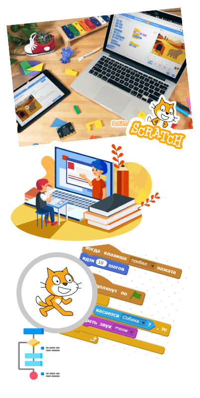 Дети осваивают основы программирования в адаптированной среде Scratch (Скрэтч), где создают свои первые анимации и интерактивные игры. Курс включает обучение цифровому рисованию в простых графических редакторах, что развивает творческие способности и моторику.